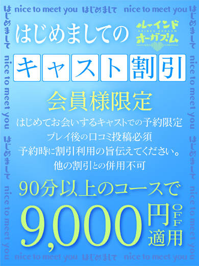 ◎90分25300円+指名料2200円=通常27500円➡18500円(9000円OFF)