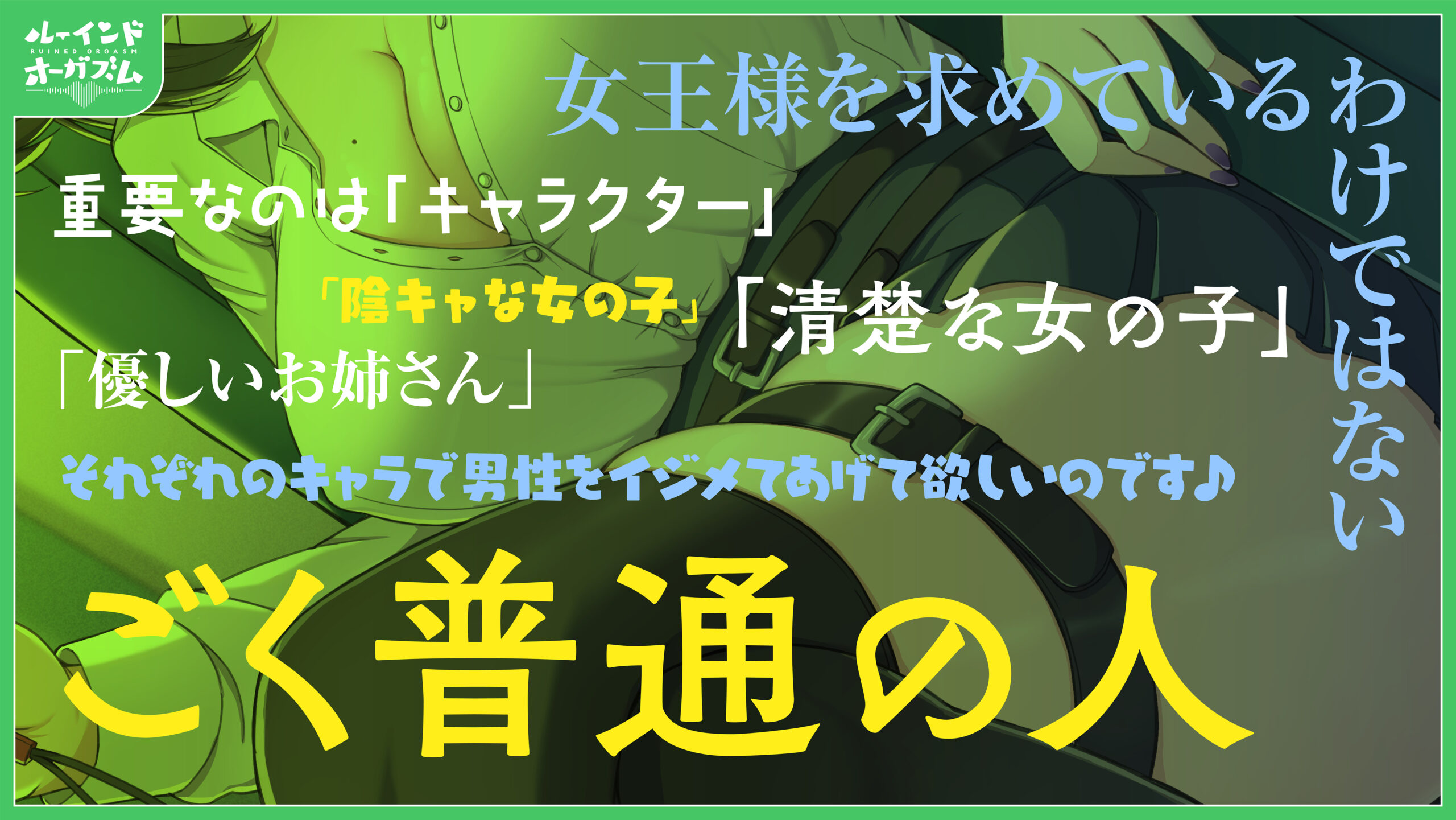 ということは、そのようなキャラクターの女性にも在籍してほしいということなのです!たとえあなたが自称「ごく普通の人」だったとしても、そのキャラで男性をイジメてあげて欲しいのです。