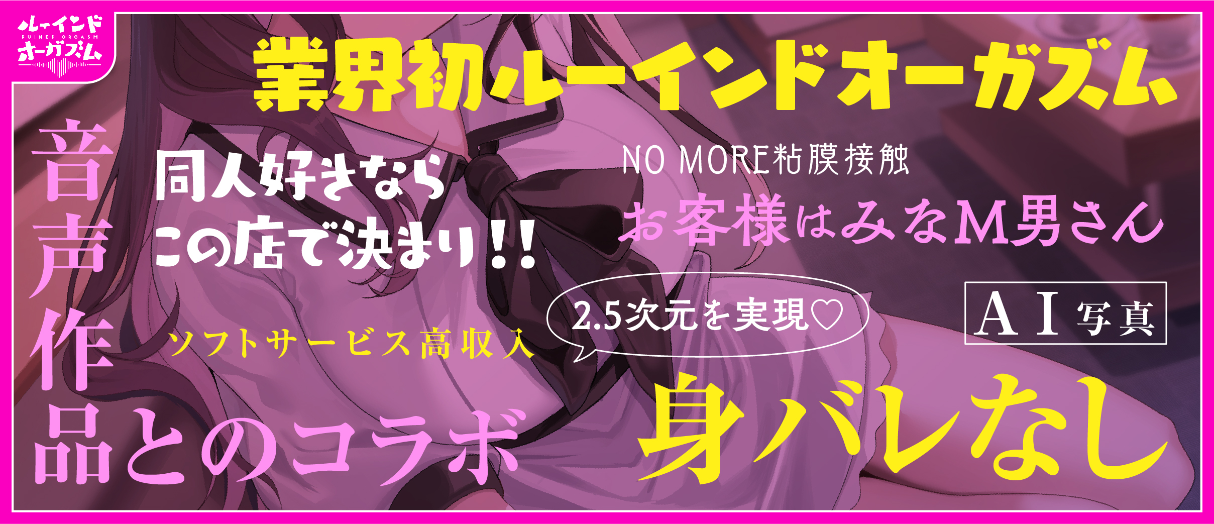 ルーインドオーガズム五反田本店は、アダルト向けの音声作品を企画・制作・販売している「072LABO」という人気サークルの代表「🍙早乙女おにぎり」さんプロデュースする、新感覚の同人音声風俗店です。
